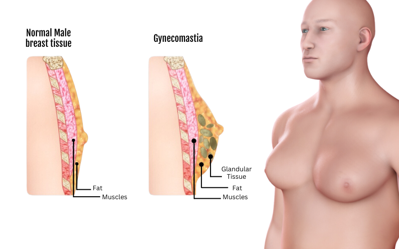 Gynecomastia is often linked to an imbalance between estrogen and testosterone hormones, a condition that can be exacerbated by obesity. Excess body fat disrupts hormone levels, leading to increased estrogen, which contributes to the enlargement of male breast tissue.