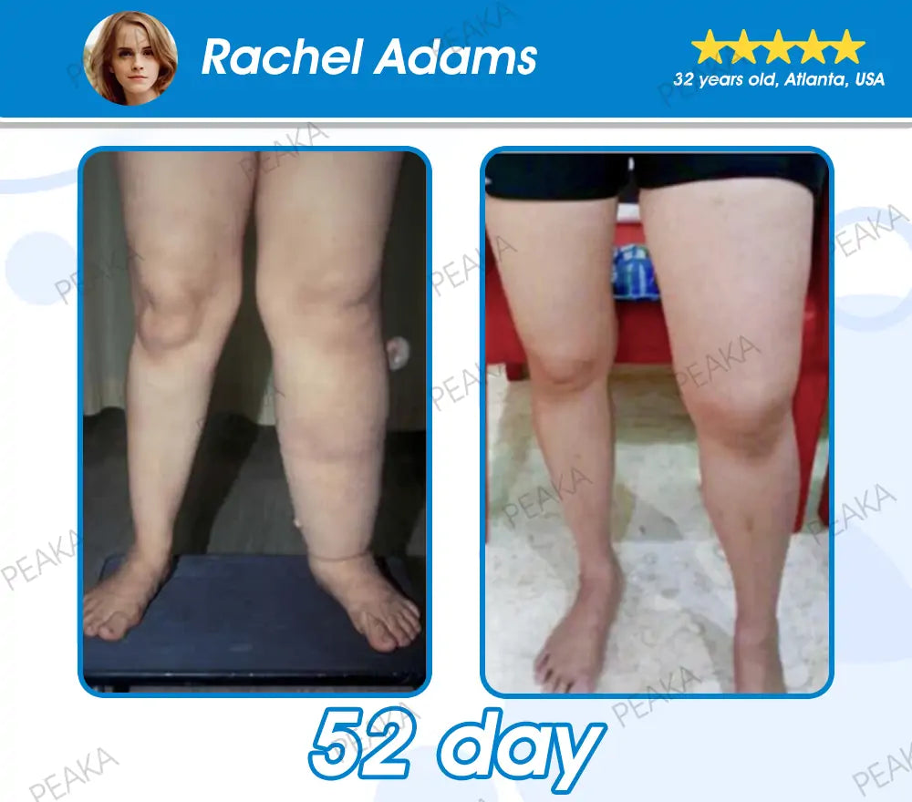 Fast forward a few weeks into using PEAKAÂŪ, and the swelling is completely gone. My leg looks totally normal again, and I actually feel confident wearing shorts and skirts like I used to.