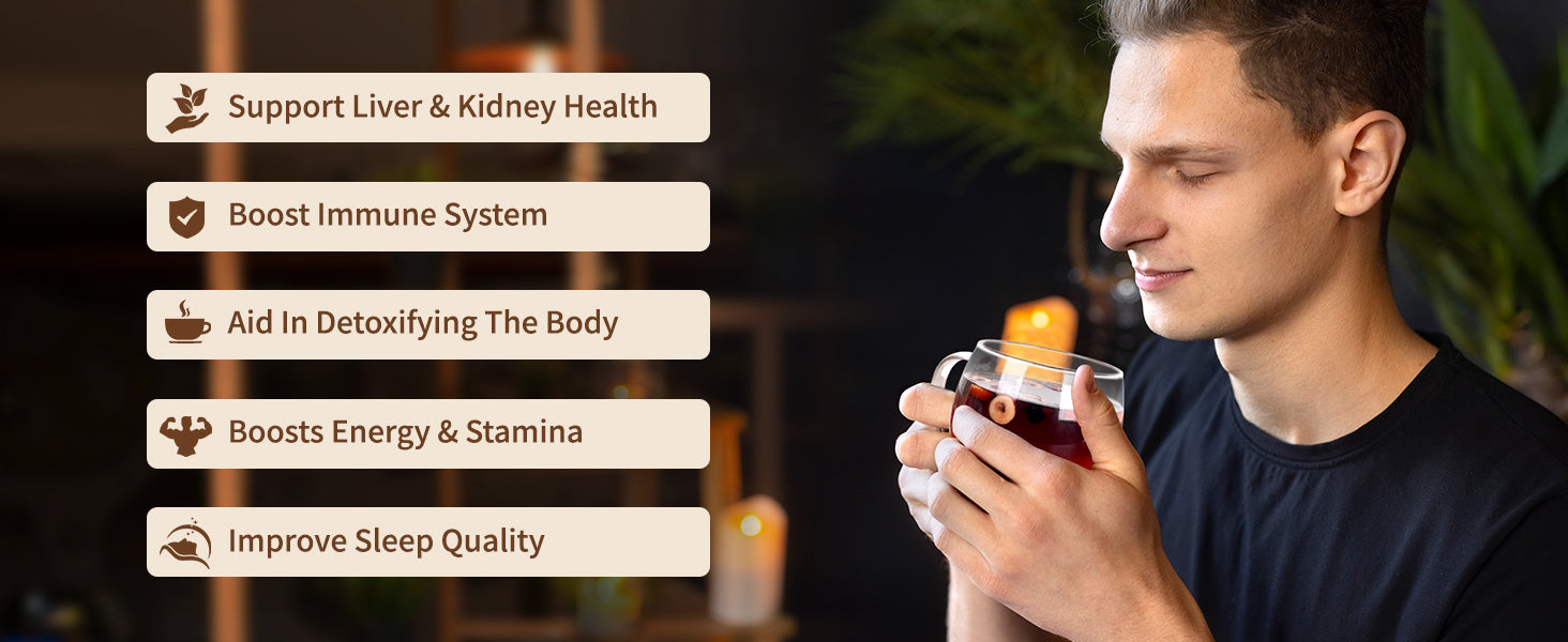 🌱 Supports Kidney Health & Boosts Energy Packed with ginseng and mulberry, this herbal tea helps to detoxify and support your kidneys while increasing energy levels. Say goodbye to fatigue and hello to lasting vitality!
